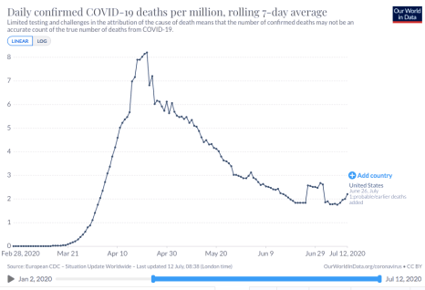 - The current pandemic is relatively benign: thus far, the U.S. has suffered a total of about 145,000 deaths, or 440 per million of population;